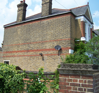 This late Victorian house in Lee South London shows the side flank after cleaning and re pointing in RIBBON point. The chimney stack was also cleaned and re pointed in the same style.