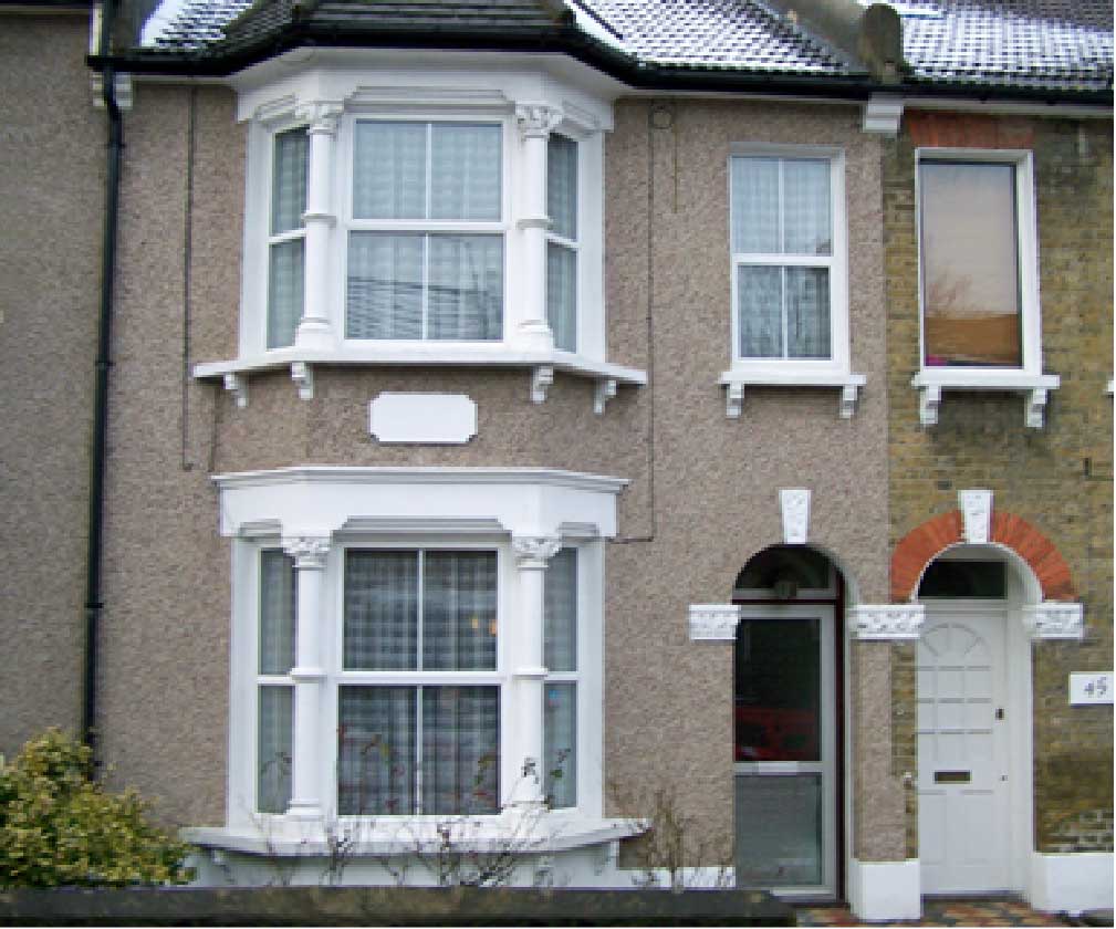 Back to pebbledash removalAnother transformation in Greenwich with red brick features. This property was one of three in the road and had minimal brick replacement. Again the red brickwork was pointed in Tuck and the yellow Ribbon point always a good finish for these features.